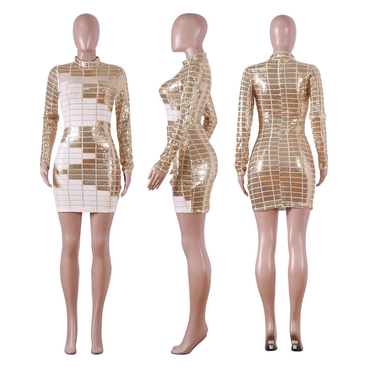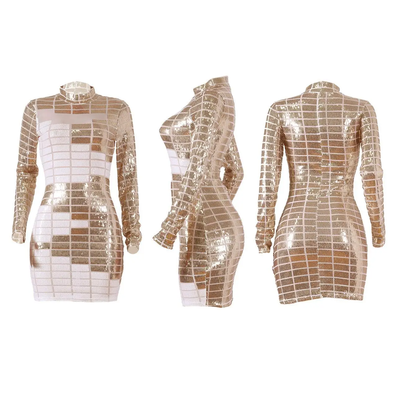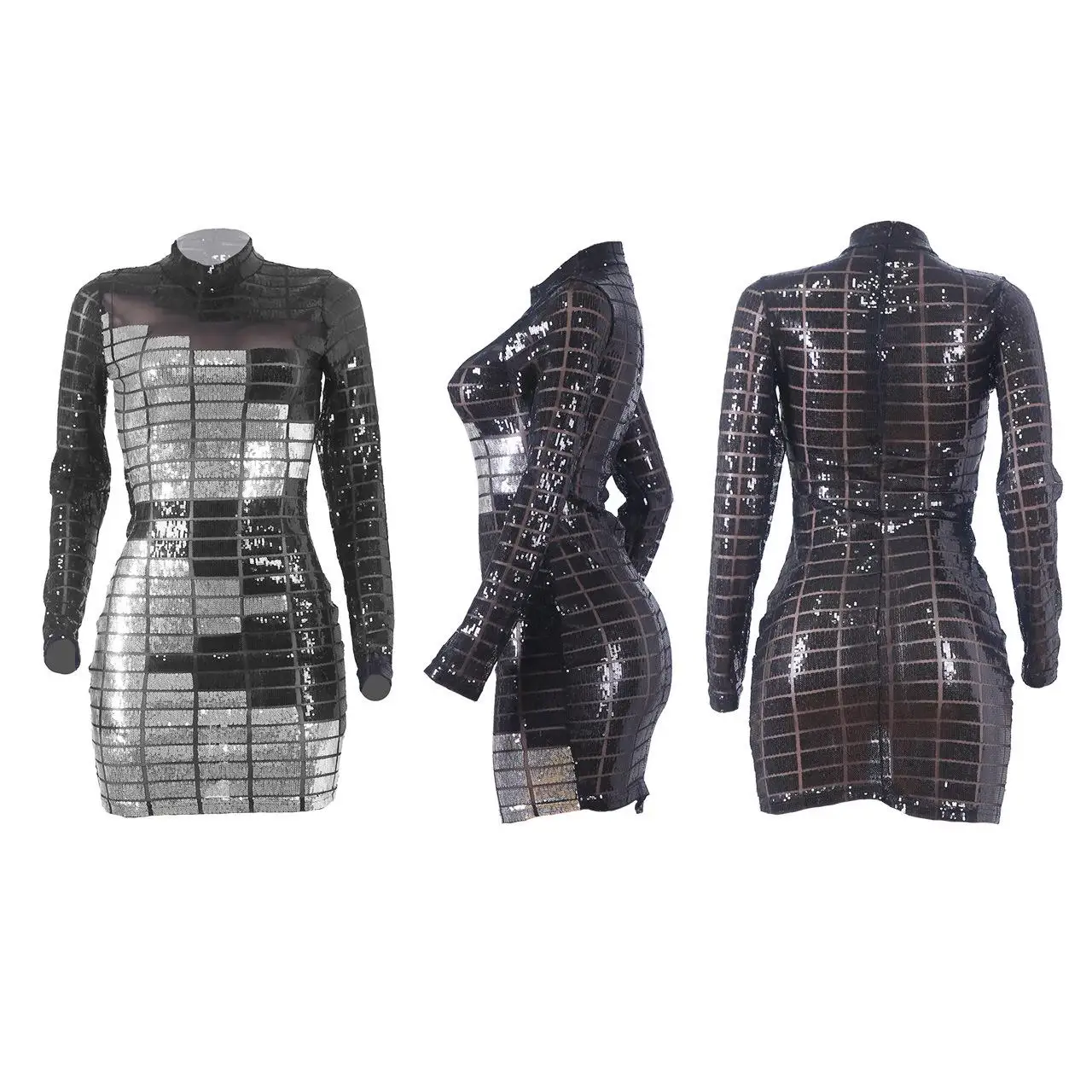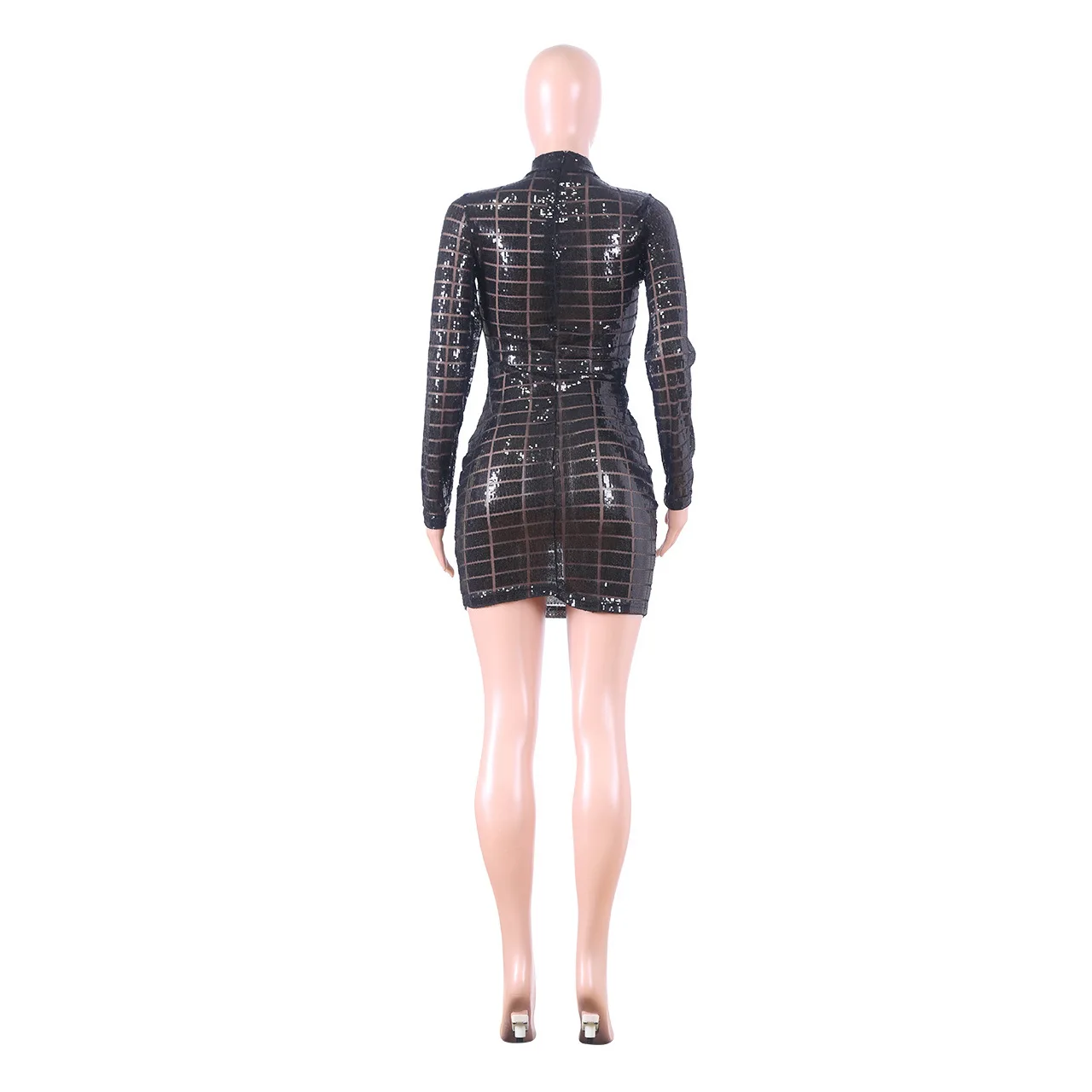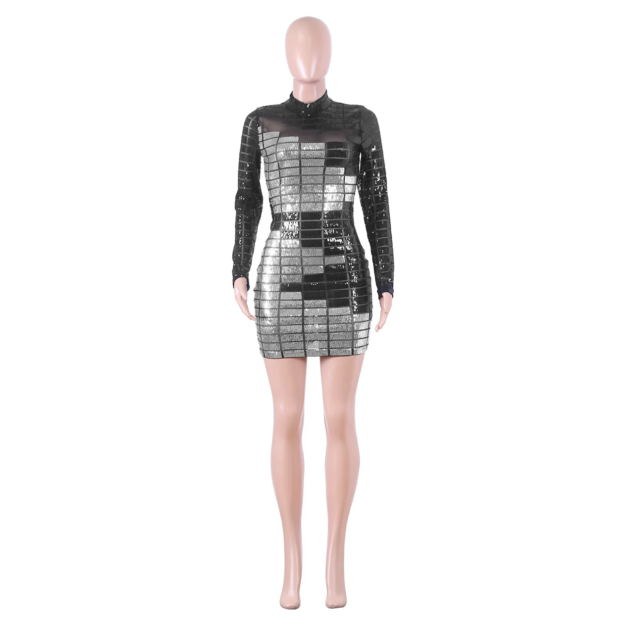 All The Shine Sequins Sheer Mesh Long Sleeve Bodycon Dress