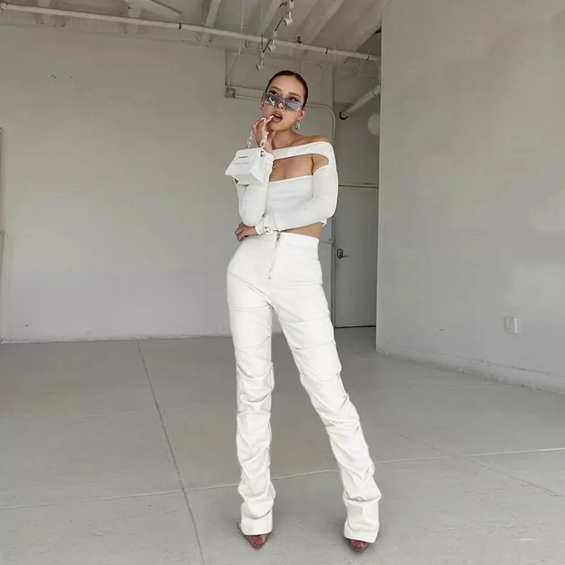 Classic Pair High Waist Casual Leather Stacked Pants