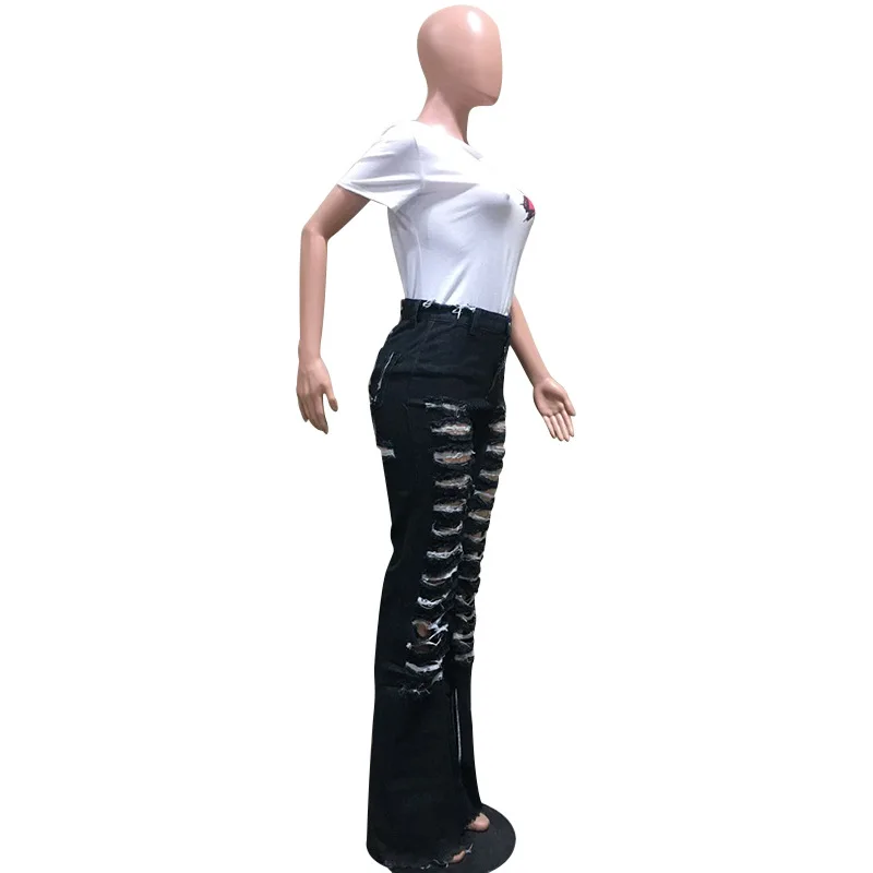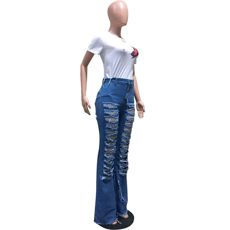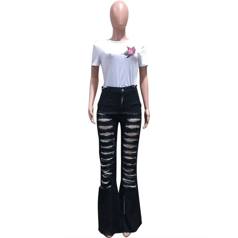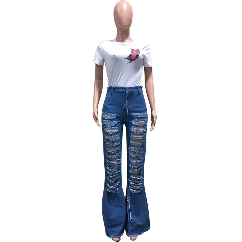 QCD8342 - Summer ladies distressed trousers casual women ripped high waisted boyfriend jeans |