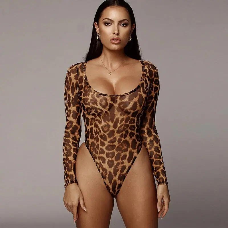 New Arrival Custom Deep V Neck One Piece Female Leopard Women Sexy Body Suit